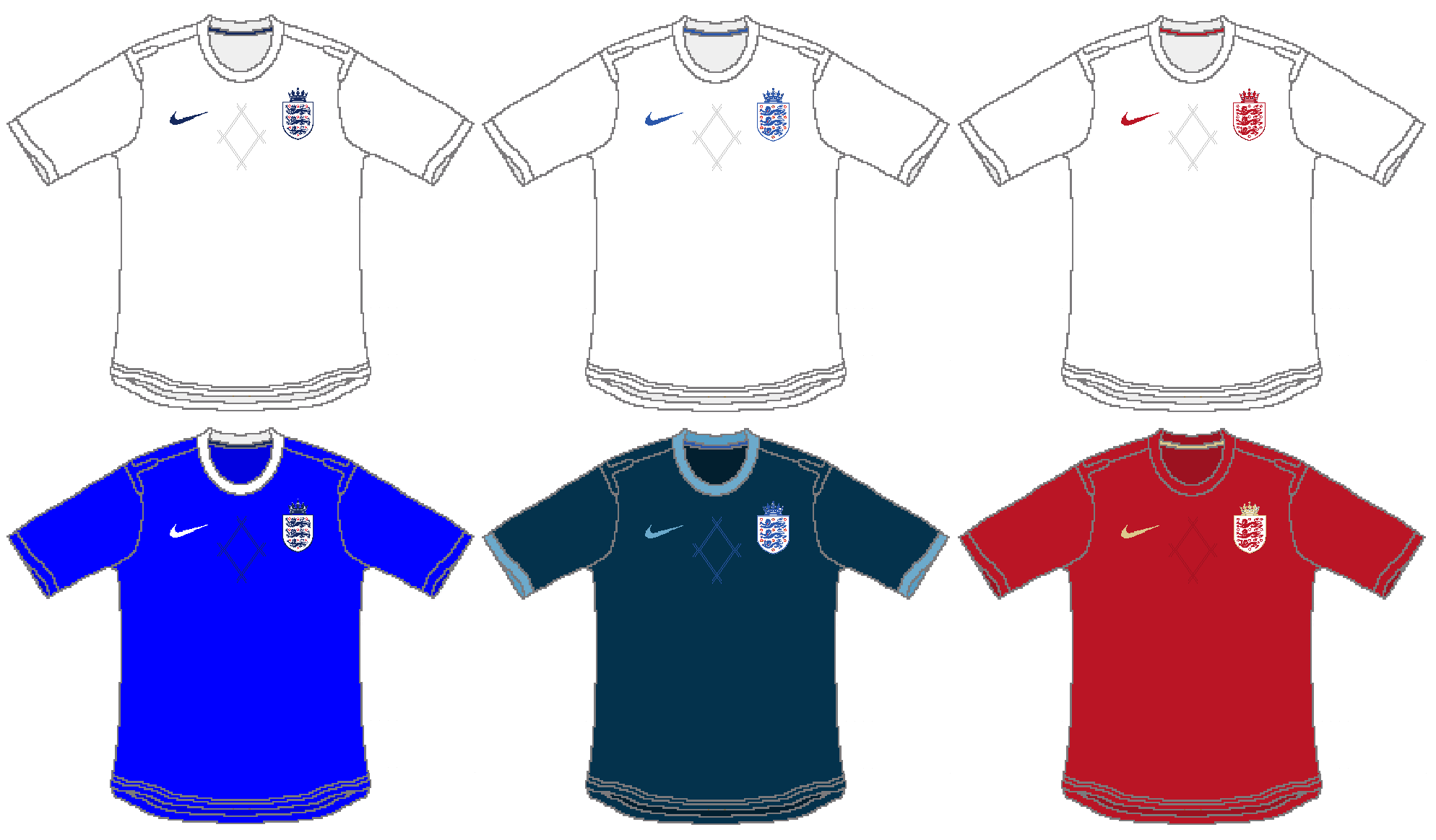 6 designs (3 home and 3 away) for the 150th anniversary of the FA. The designs are inspired in the England's first kit.
