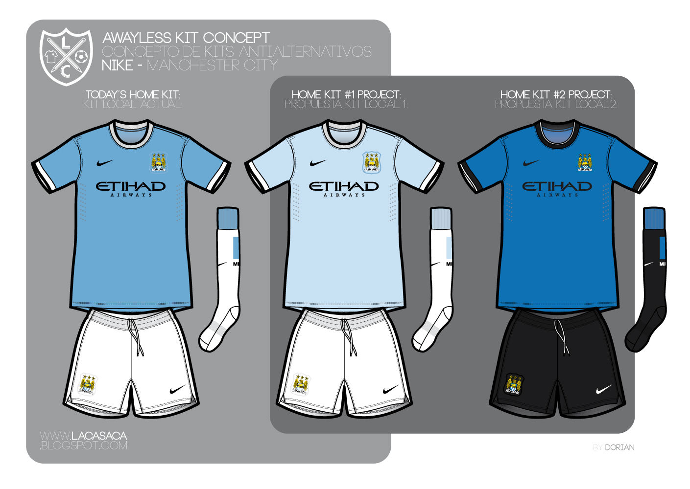 Con el afán de dar una resolución a ambos problemas por medio del diseño, se me ocurrió un concepto que podría funcionar con varios clubes. Se trata de generar dos kits titulares que contrasten entre sí (siempre alguno de los dos quedará "más titular" y otro "más alternativo") por medio de la desaturación de los colores originales (osea, dando más o menos brillo y contraste a los colores del club).
