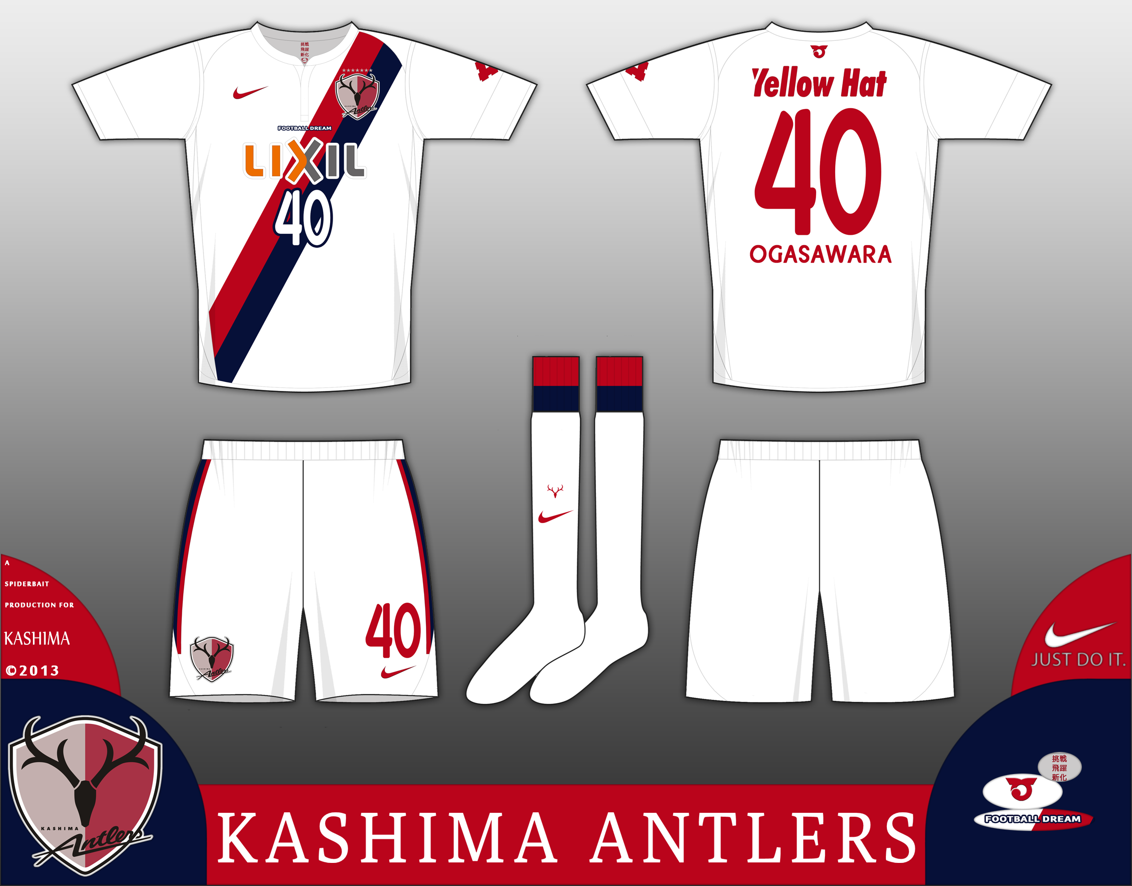 On the front of the shirt are the words "FOOTBALL DREAM", which is a traditional feature of Kashima kits.