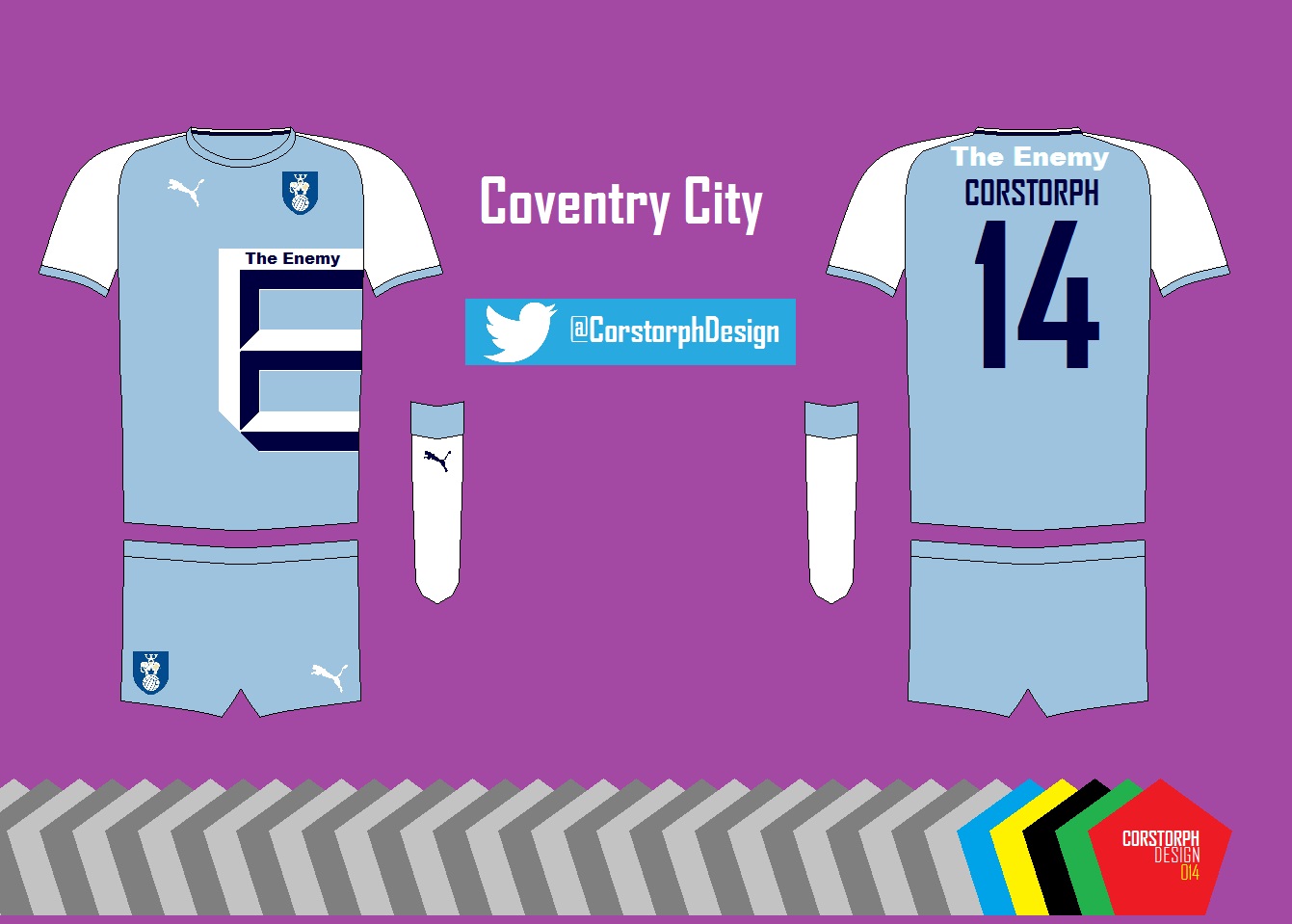 A new take on the famous Talbot strip, this time designed with a big 'E' and sponsored by Coventry band The Enemy