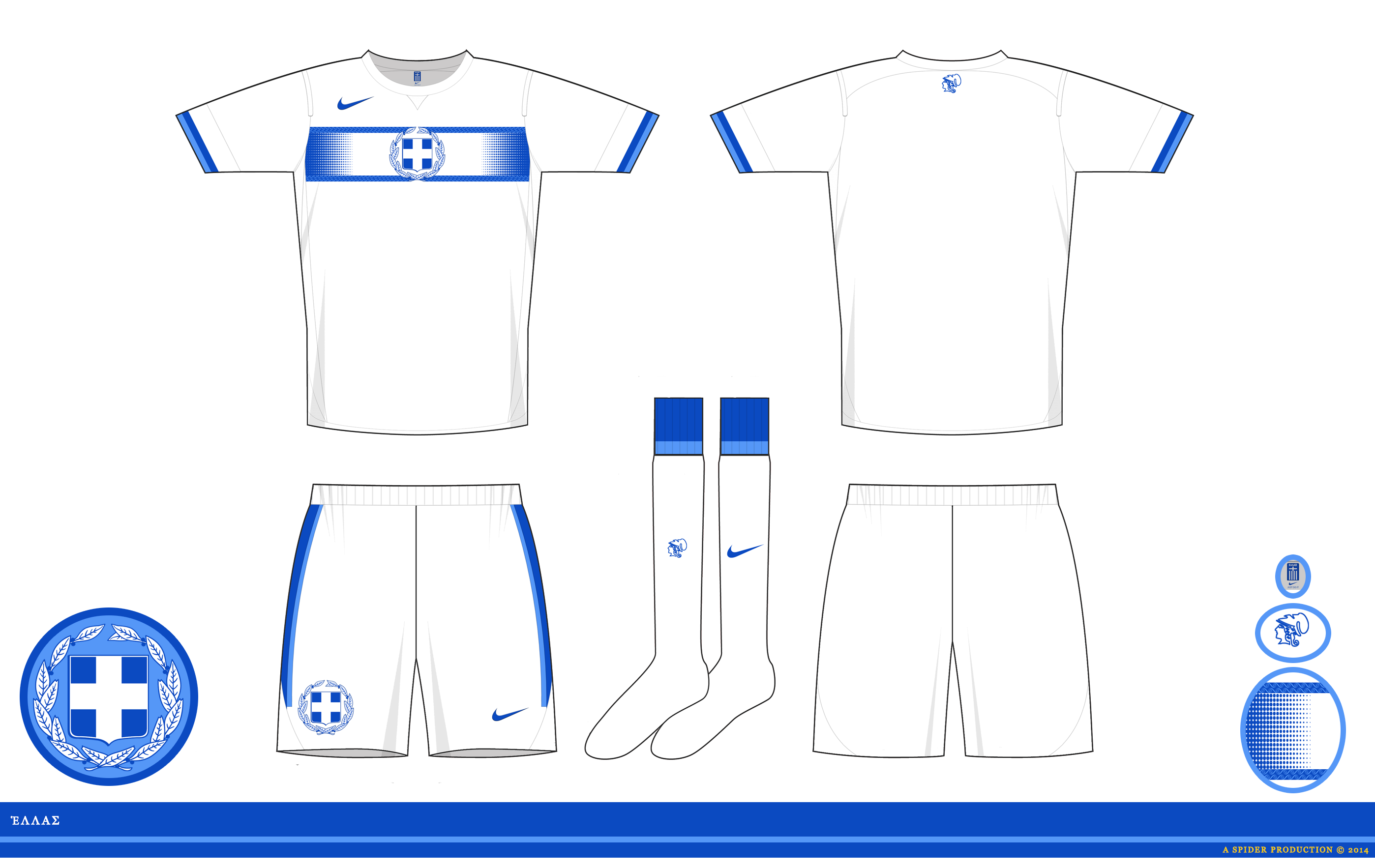 On the back of the shirt and the socks is a Hoplite from the old Greek FA logo.