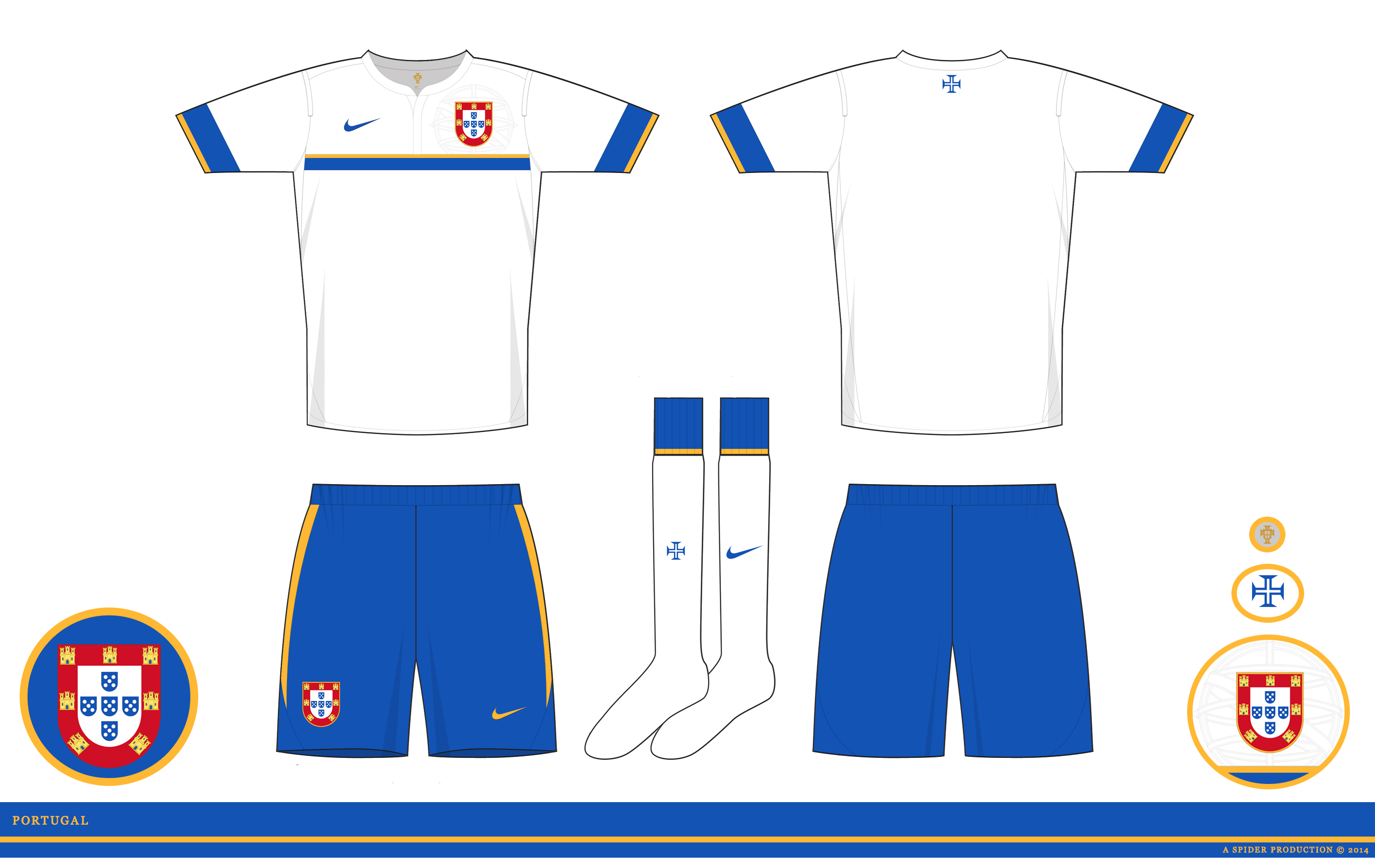 Change kit for Portugal, in white and blue, the colours of the Portuguese royal family and traditionally the colours of the nations flag until the introduction of the green and blue.