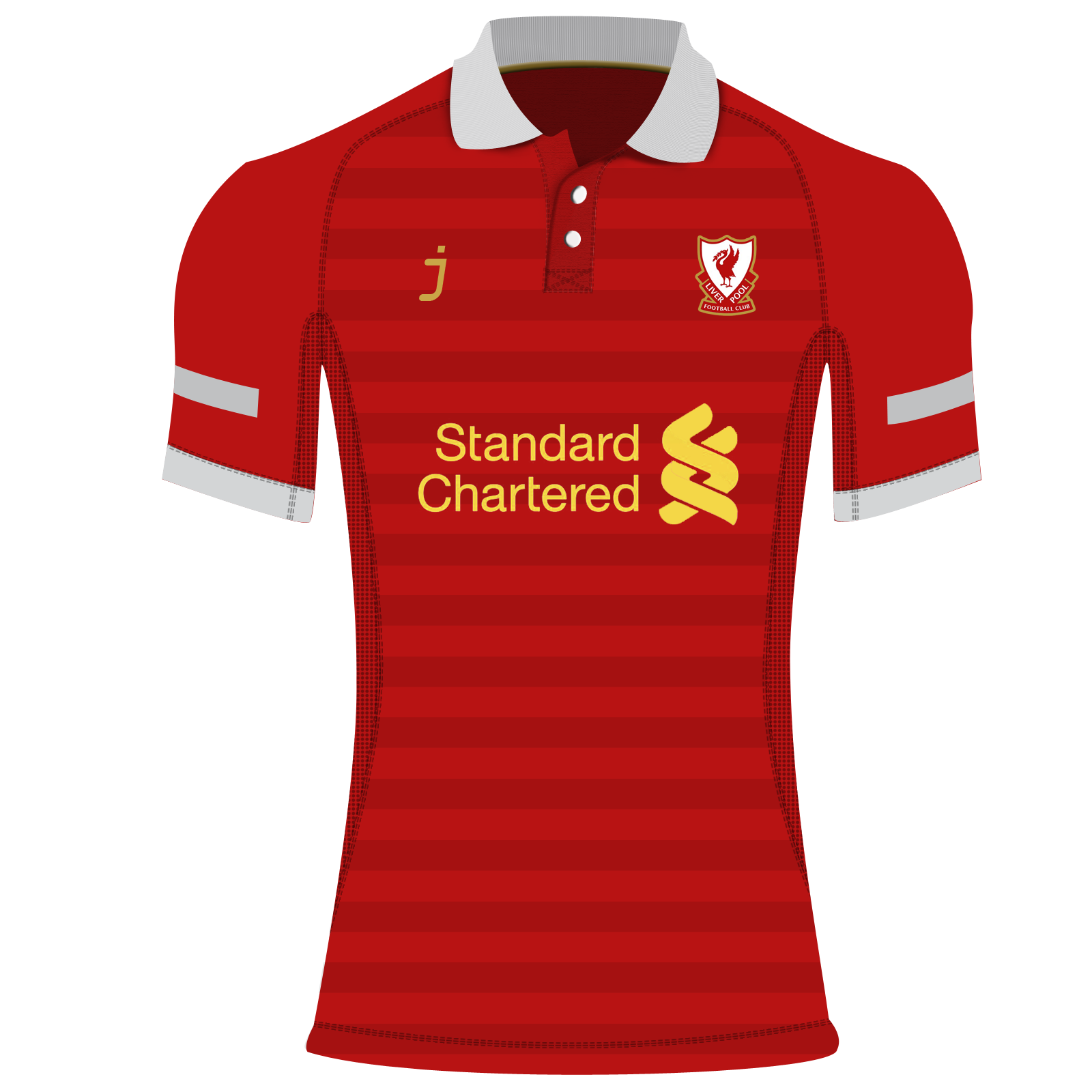 Un kit conceptual de una marca imaginaria, J-sports, para el FC Liverpool. En el anterior post, el kit completo representado en 3D