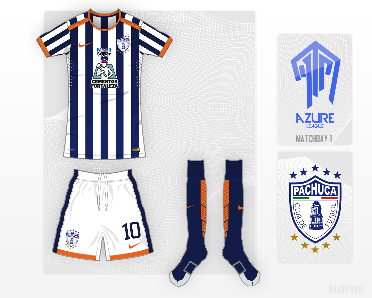 A classy home shirt for Pachuca, with orange details and a gradient in the stripes. Hope you like it