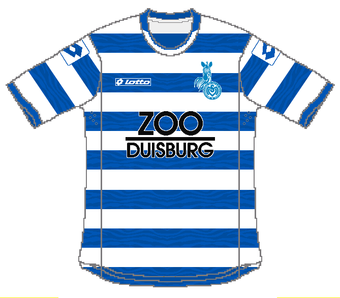 MSV Duisburg are also known as "The Zebras", so I added a subtle blue zebra pattern, keeping their tradiitonal hoop design.