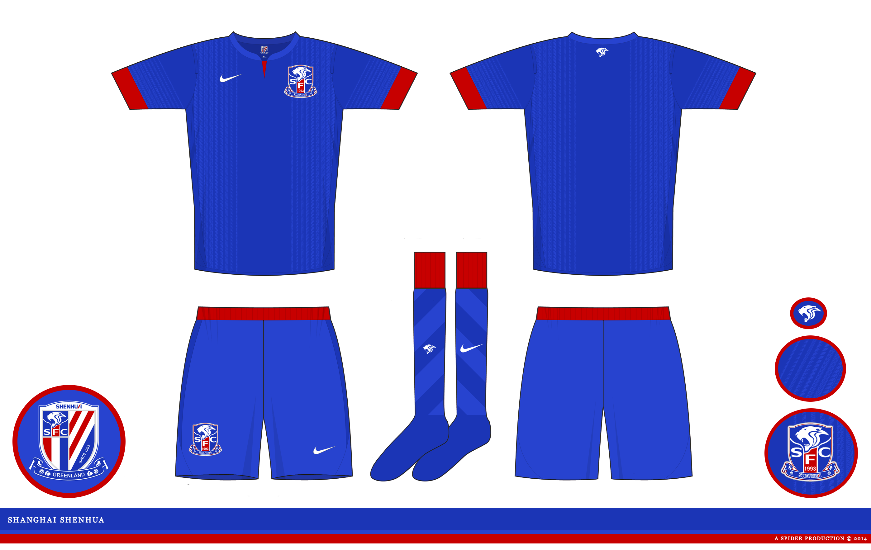 • Generic Description: Home kit for the Chinese Super League team, this in in all blue with red trim, as of Shenhua kits of late.