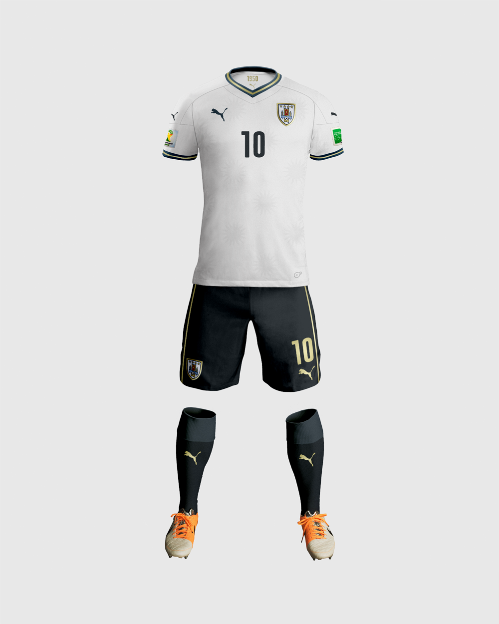The subtle pattern on the shirt and the gold details were inspired by the Uruguayan "Sol de Mayo" (Sun of May). I hope you guys will like it!