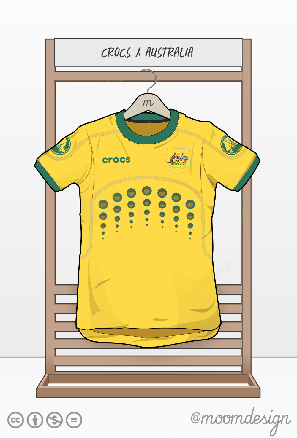Here's a Crocs football kit / 2016 australia home kit, complete with body holes for especially hideous sacrifice for comfort ( to stay true to the footwear.) Australia chosen as the victim simply because alligators and heat, etc @moomdesign