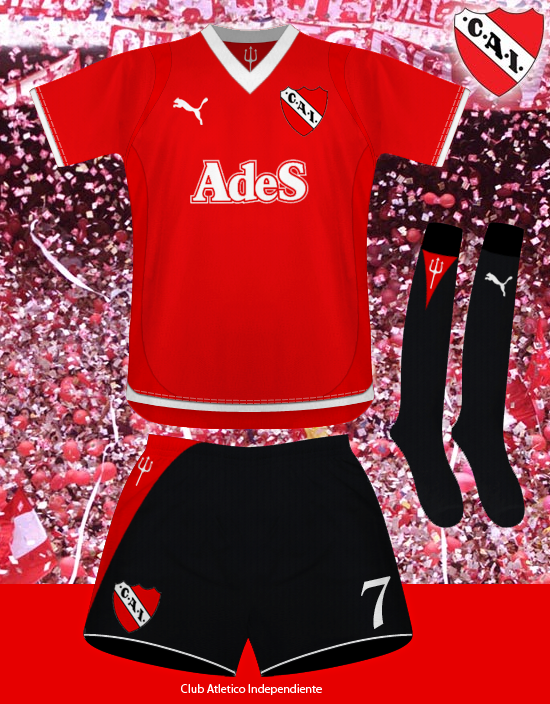 Home kit for Diablos Rojos, influenced by the classic kits the team wore in the 1970s, with modern trim features, utilitarian but very agressive, like an Independiente kit should be.