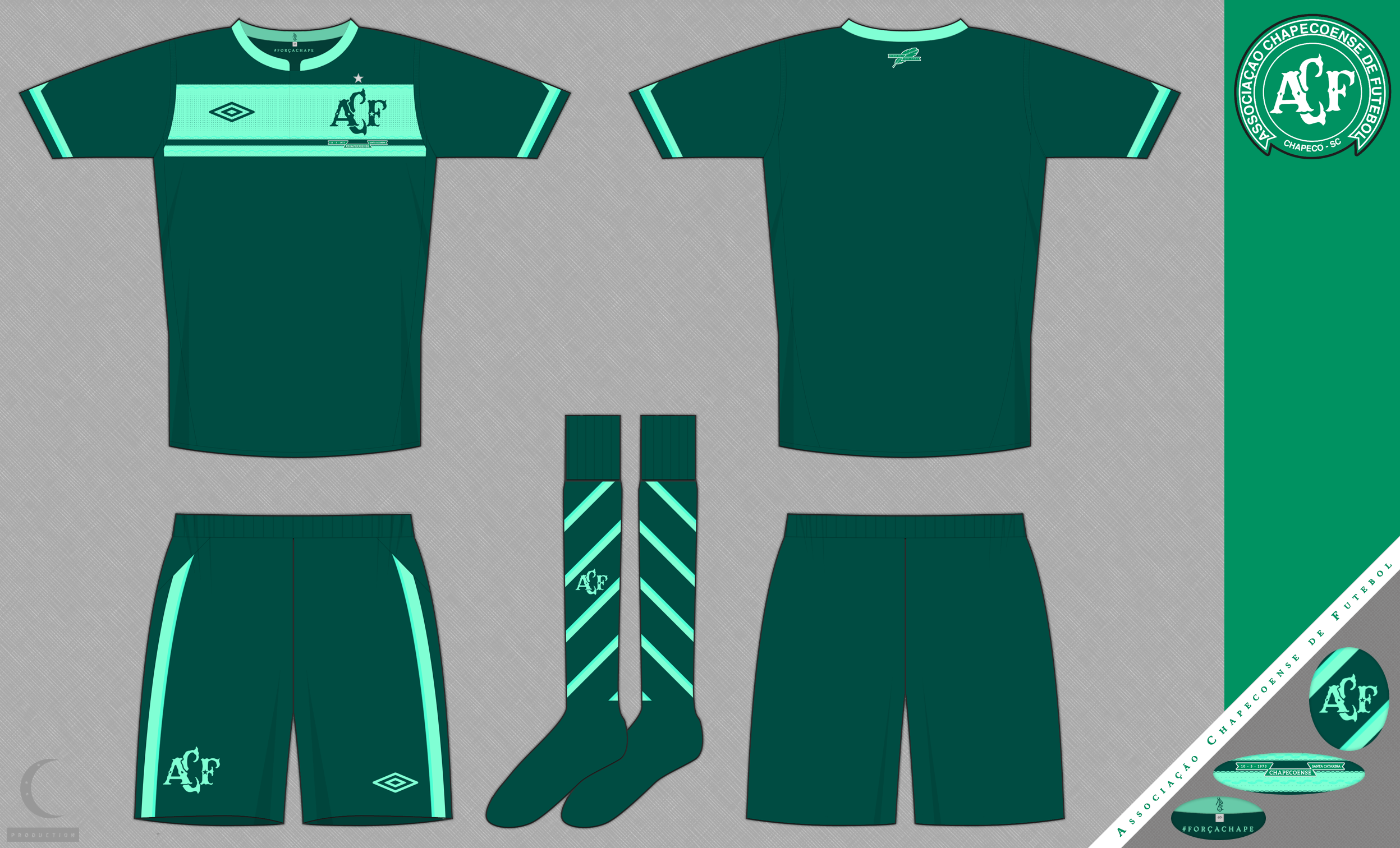 On the back of the shirt is the feather with the motto "Somos Mais Que Onze" (we are more than 11), and on the inside of the shirt is printed #ForçaChape