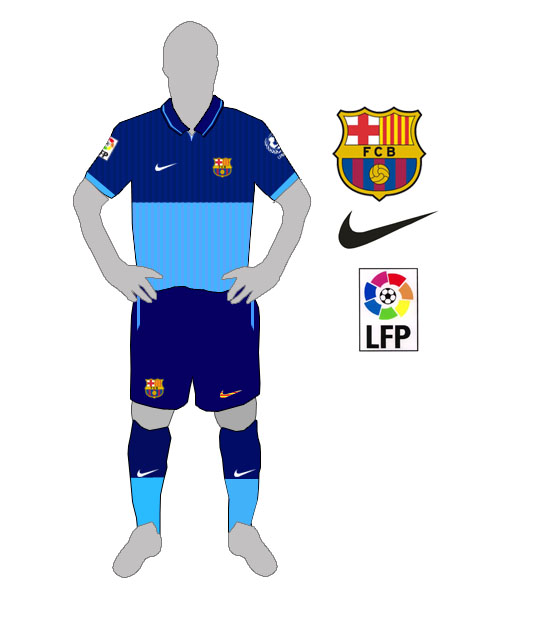 Home, away and third kits for European Champions, FC Barcelona.