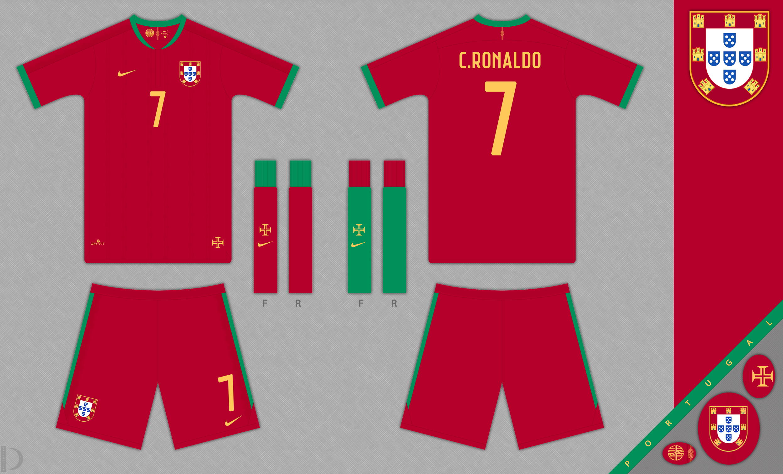 Home kit for Portugal, this is in Wine Red with green trim.