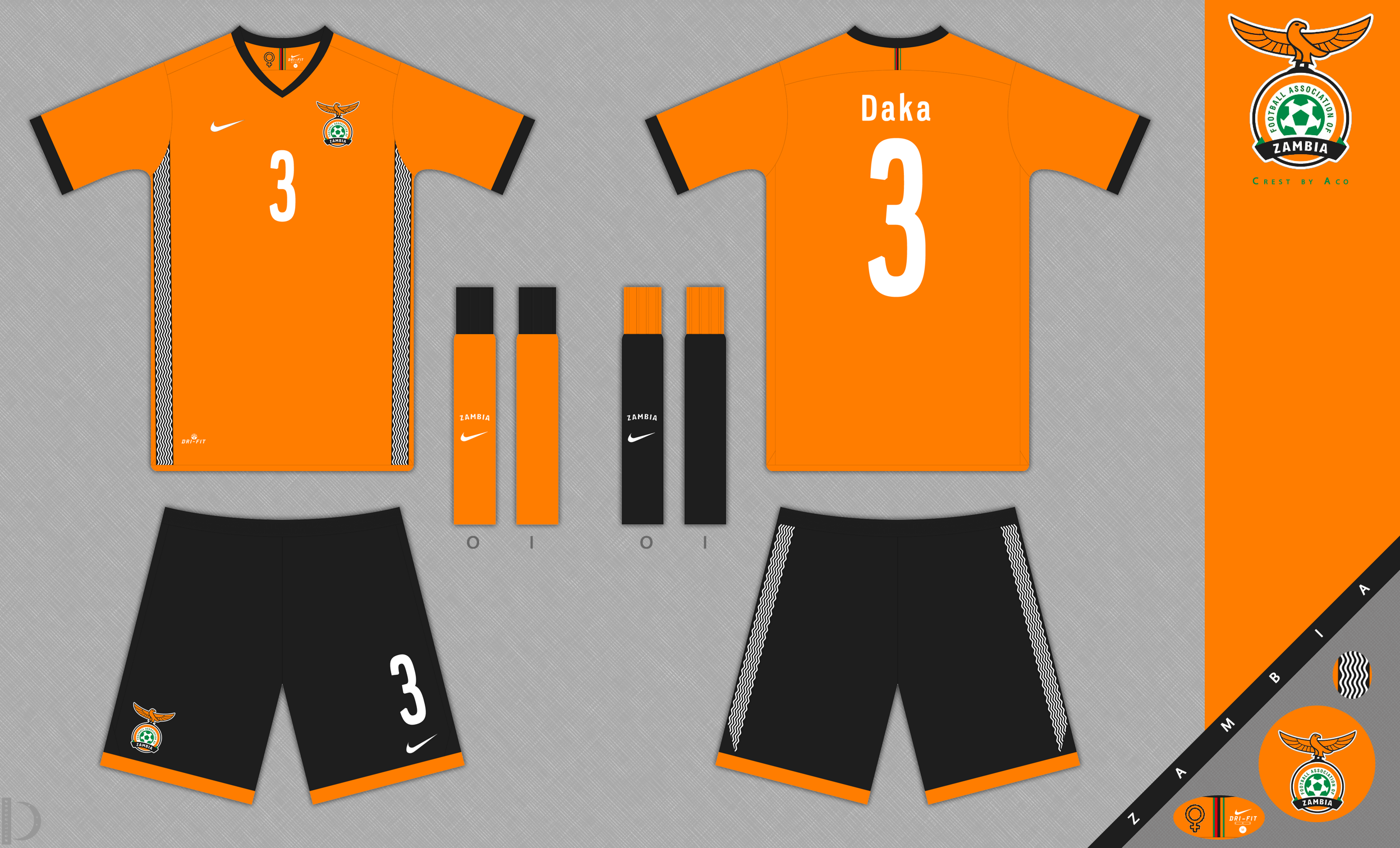 Home kit for Zambia, this is in Copper, a colour that the Zambia national team (Chipolopolo - Copper Bullets) have played as a first choice in the past.