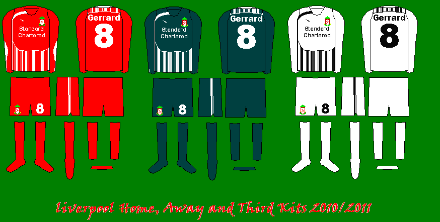 Liverpool Home, Away and Third Kits 2010/11 Reebok