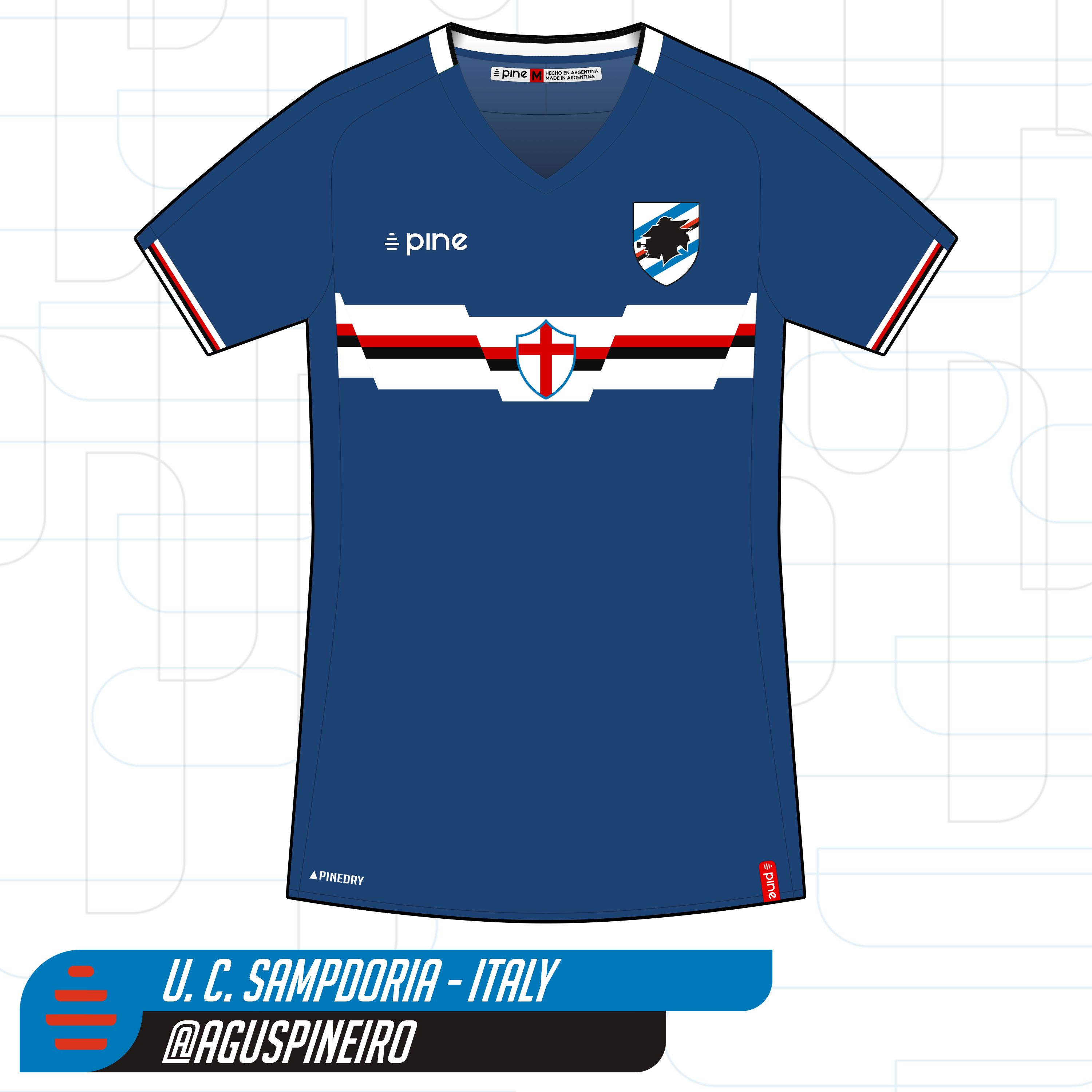Home kit for U. C. Sampdoria, from Genoa, Italy.