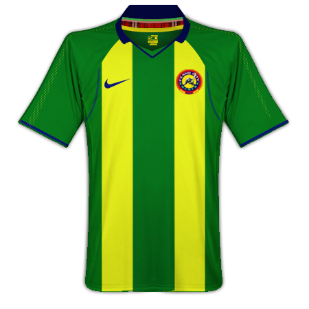 Away - Green with yellow stripes and a dark blue trim