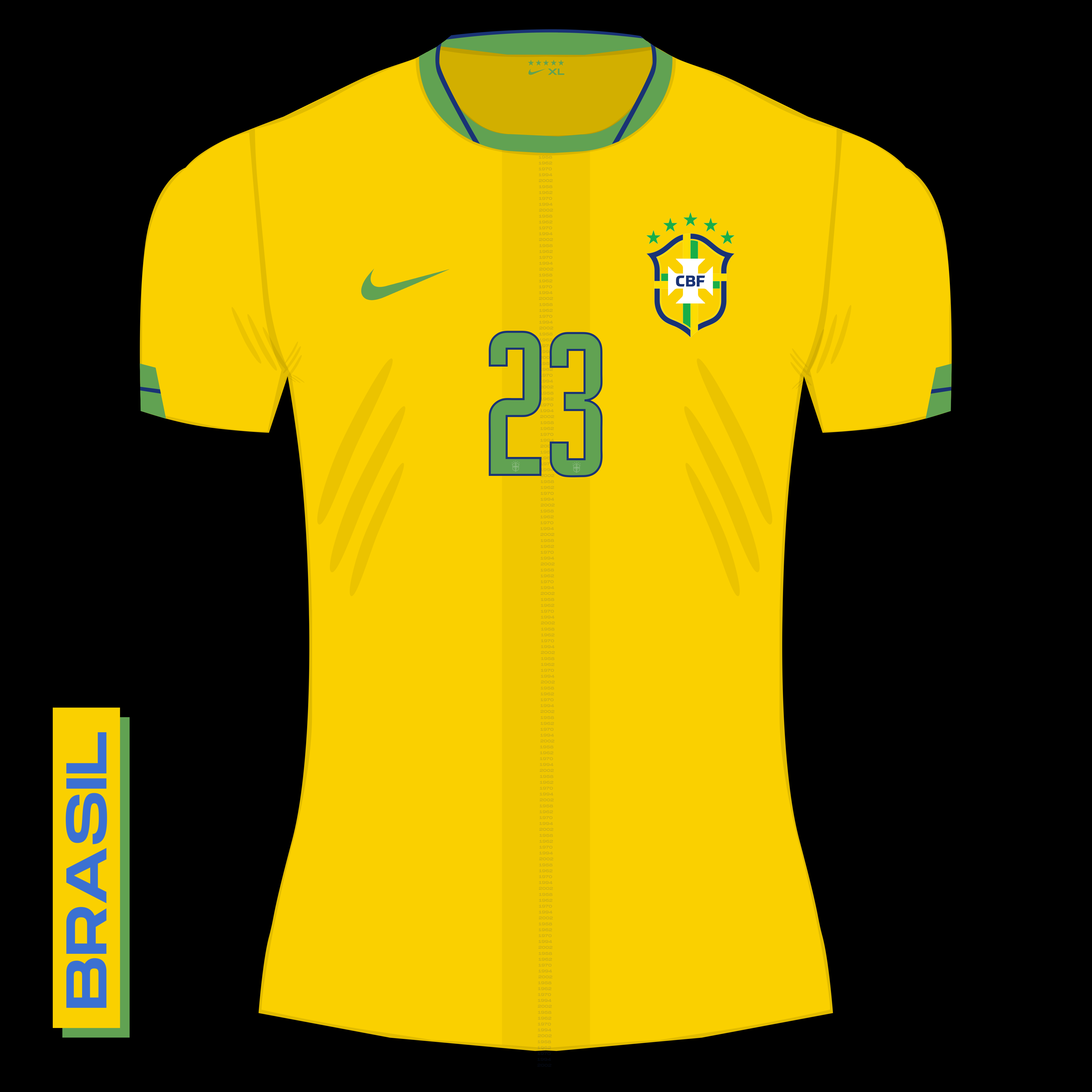 Here is my attempt at a Brazil shirt — again, I’ve tried to do something that doesn’t make it just a plain yellow shirt, but it’s not too extravagant that it takes away from the simplicity of the Brazil kit.
