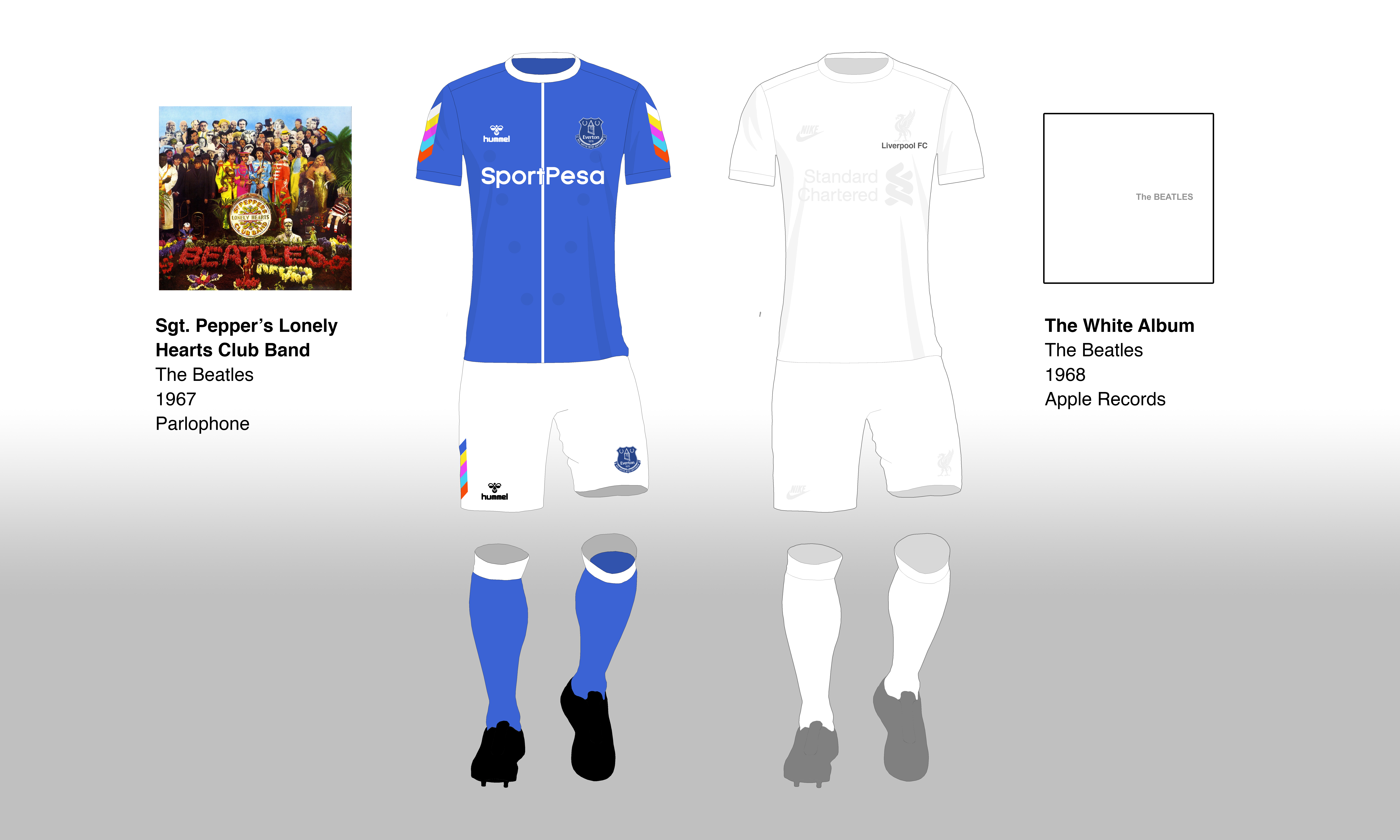 Everton - Bassed on Sgt Pepper's, using the colours and design of the Beatles jackets and Hummel's chevrons to create a military look.
