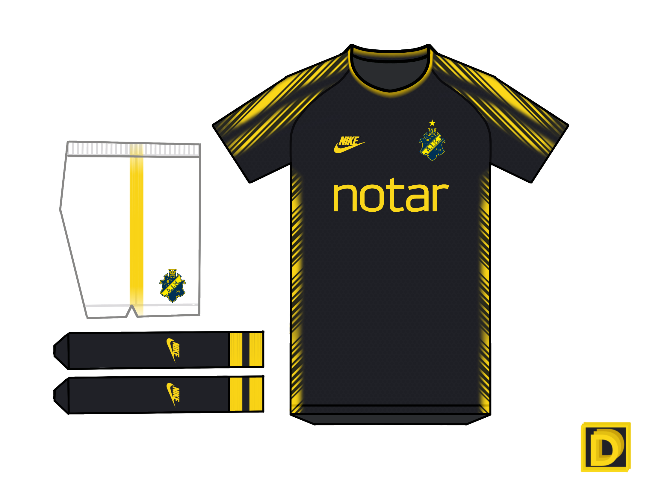 AIK. Includes Black with Yellow Detail. Inspired by Puma kit from the 90’s. Classic Nike. Made with Procreate. Comment Below.