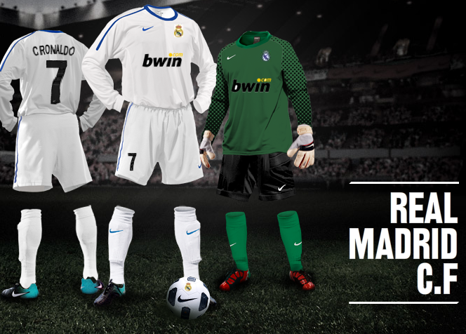 Made a new Real Madrid kit with the Nike kit builder. This time i used the bwin logo and also a white/blue design instead of white black. Soon I will also upload a away version !