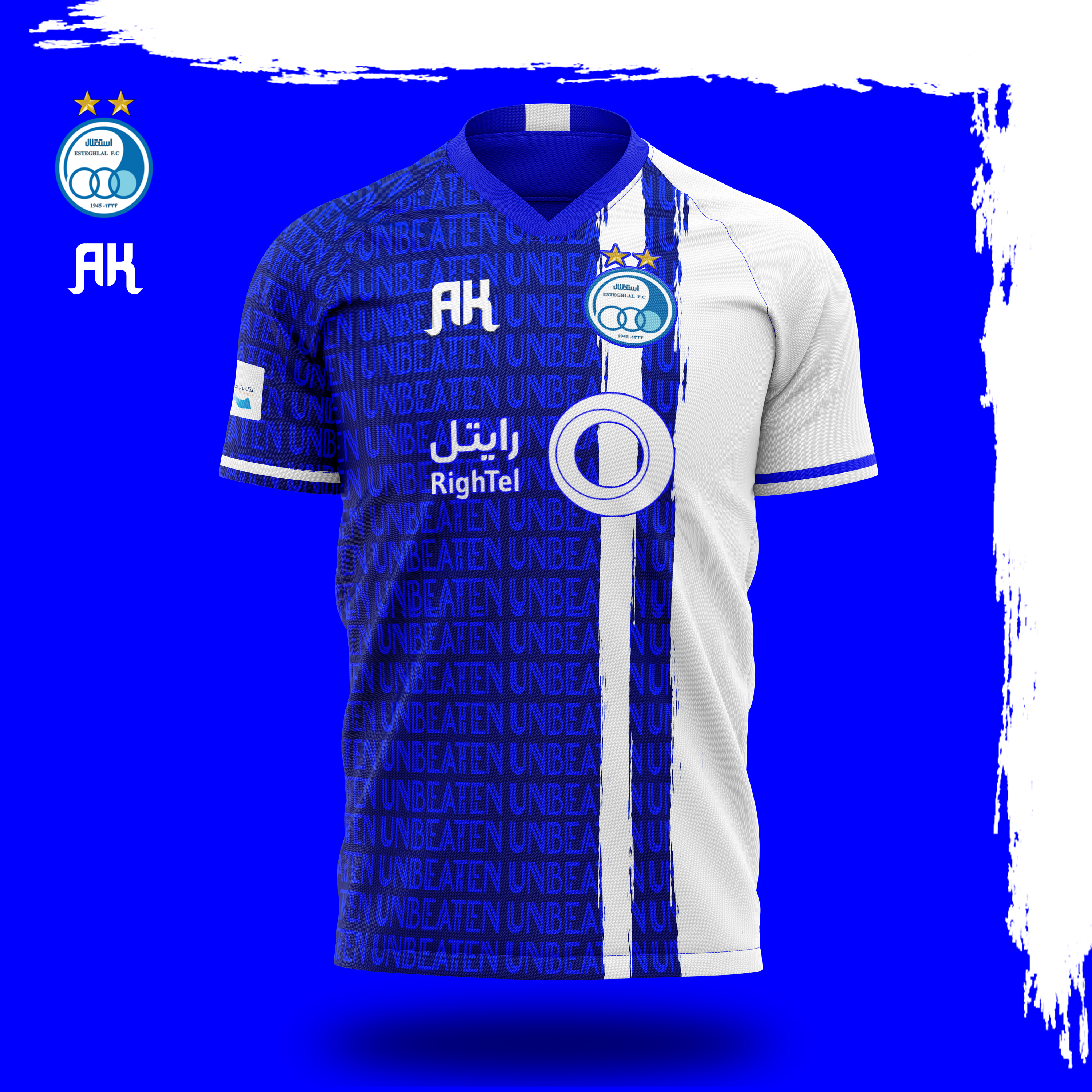 The blue part of the work also uses "unbeaten" typography, which refers to Esteghlal's undefeated championship in the season 1400-1401 (2021-2022).