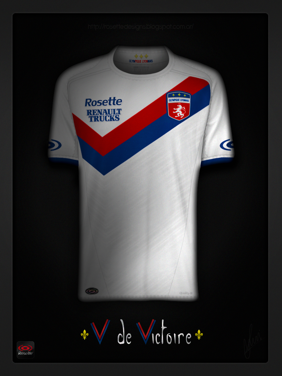 Abran la imagen en otra pestaña. Utilizo el escudo que yo re-diseñe (http://www.designfootball.com/design-galleries/football-crests/re-designed-logo-of-olympique-lyonnais-8326/) en este diseño en el que se re-diseña el uso de la \"V\" en la camiseta del Lyon.