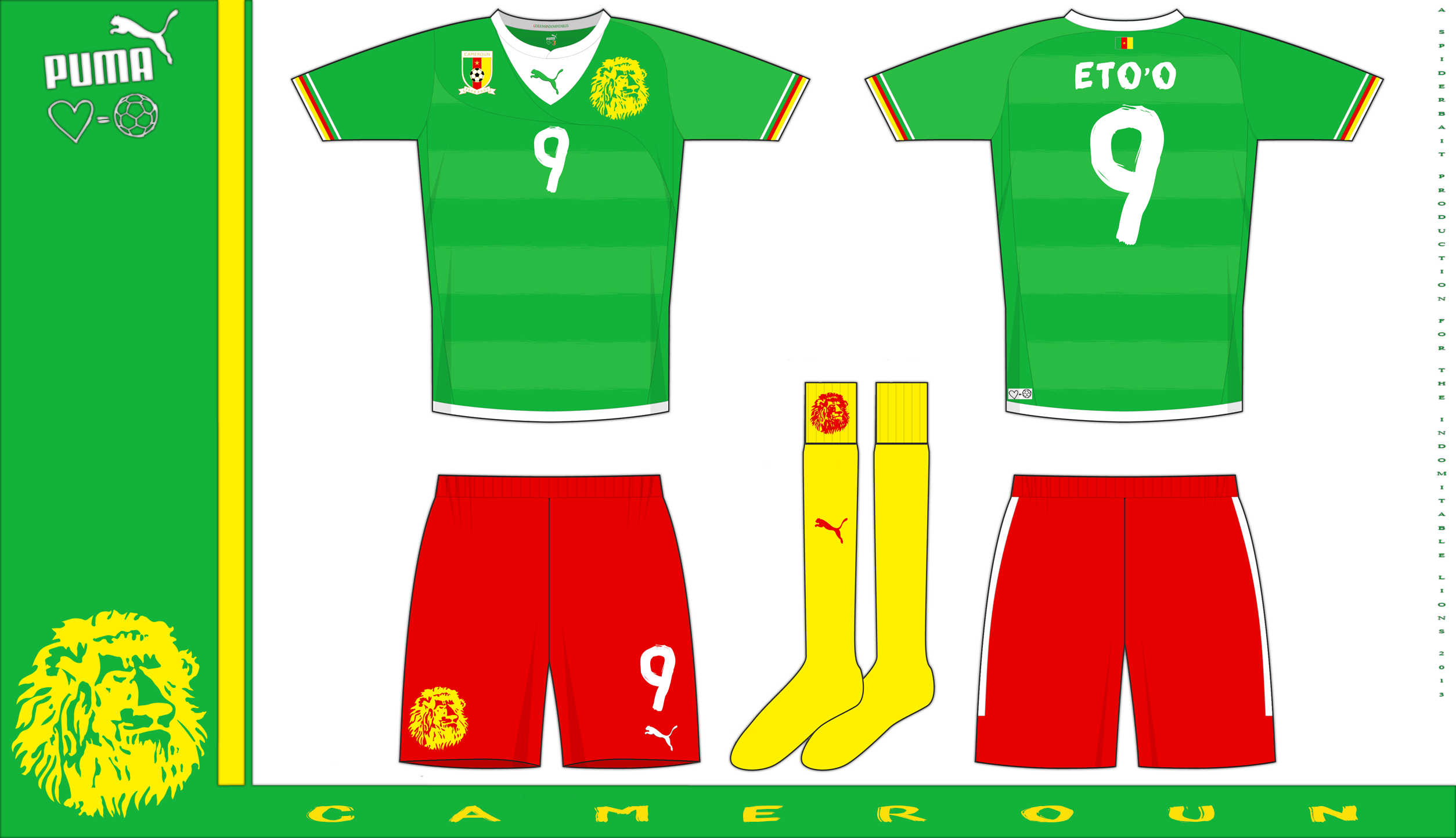 Home kit for Cameroon, with a return to the brighter shades used during the 1990 world cup.