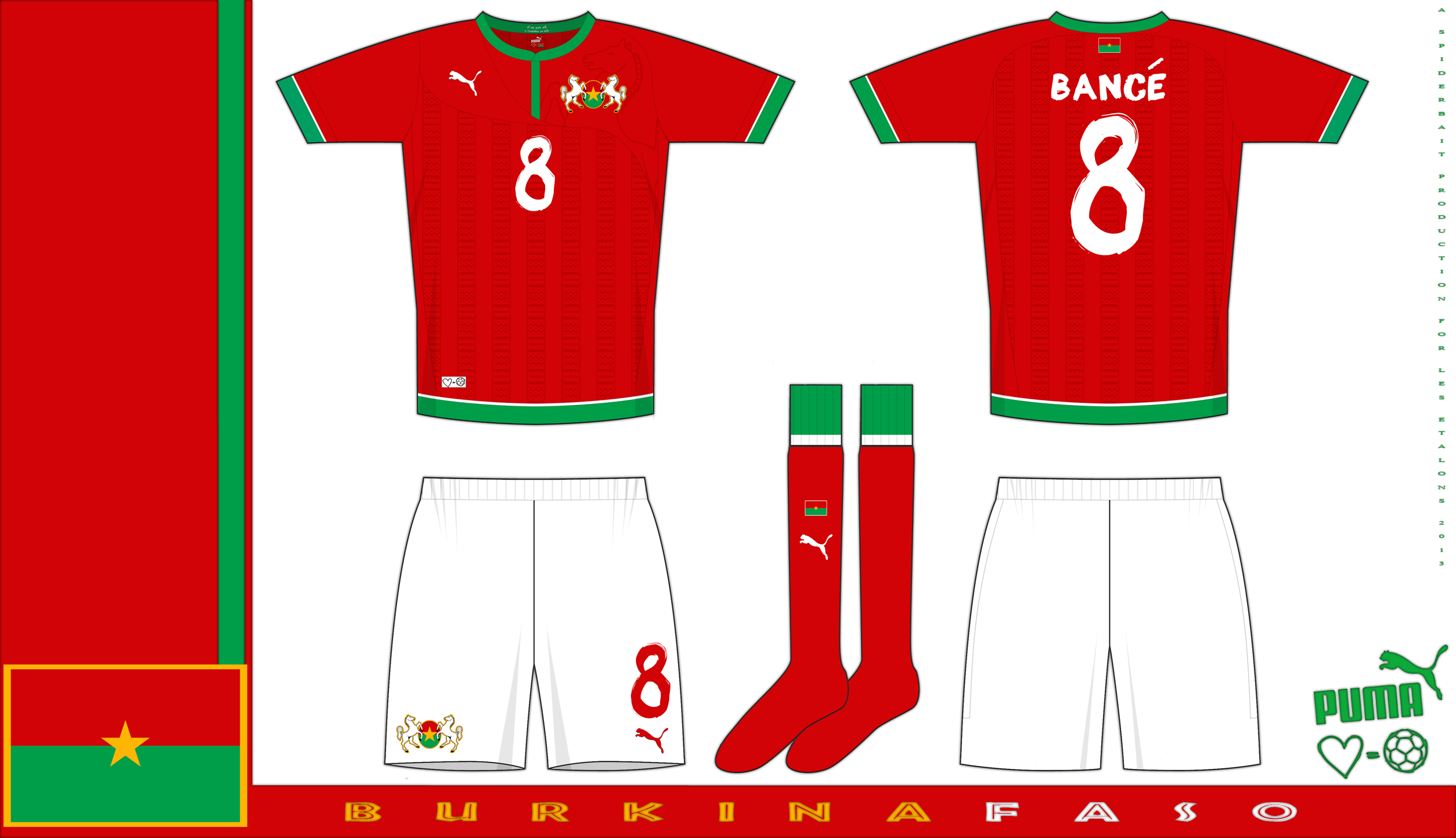 • Generic Description: Home and away kits for Burkina Faso, using the ONELOVE template that I also used for Algeria and Cameroun.