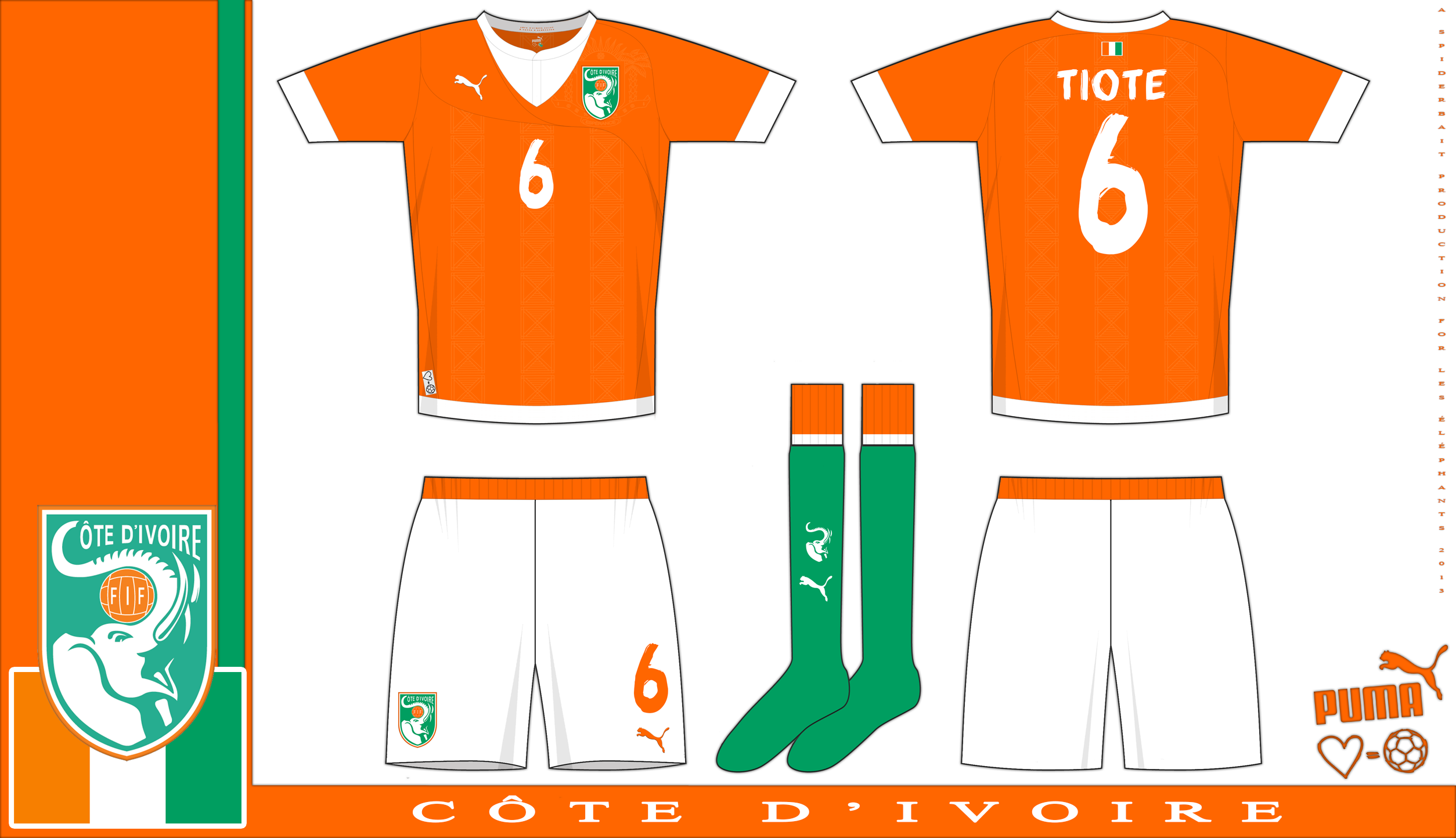 Home and change for the Ivory Coast, in Orange, white and green. Both using the ONELOVE template.