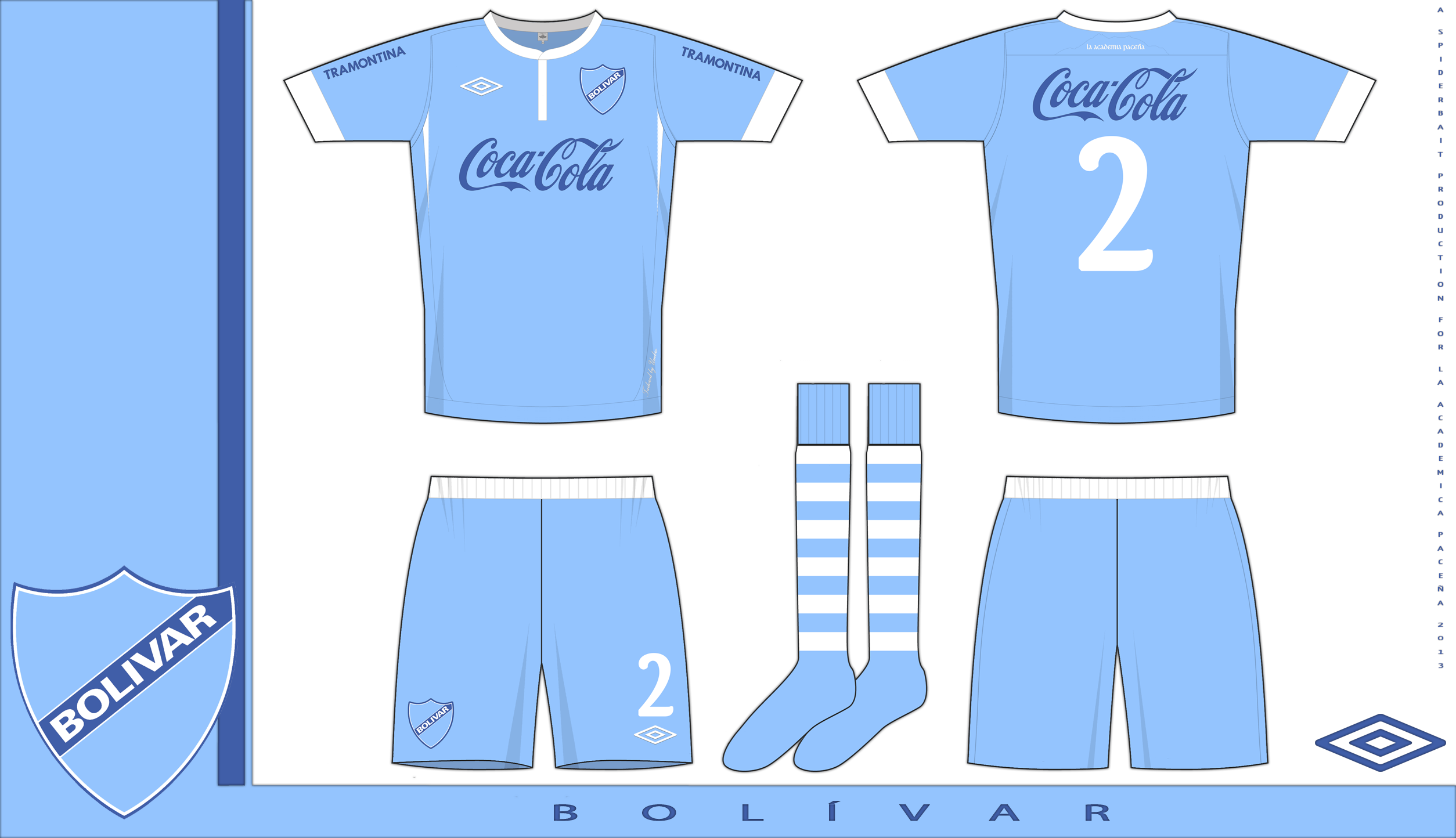 Home kit for the team from La Paz, in the classic Celeste with white trim.