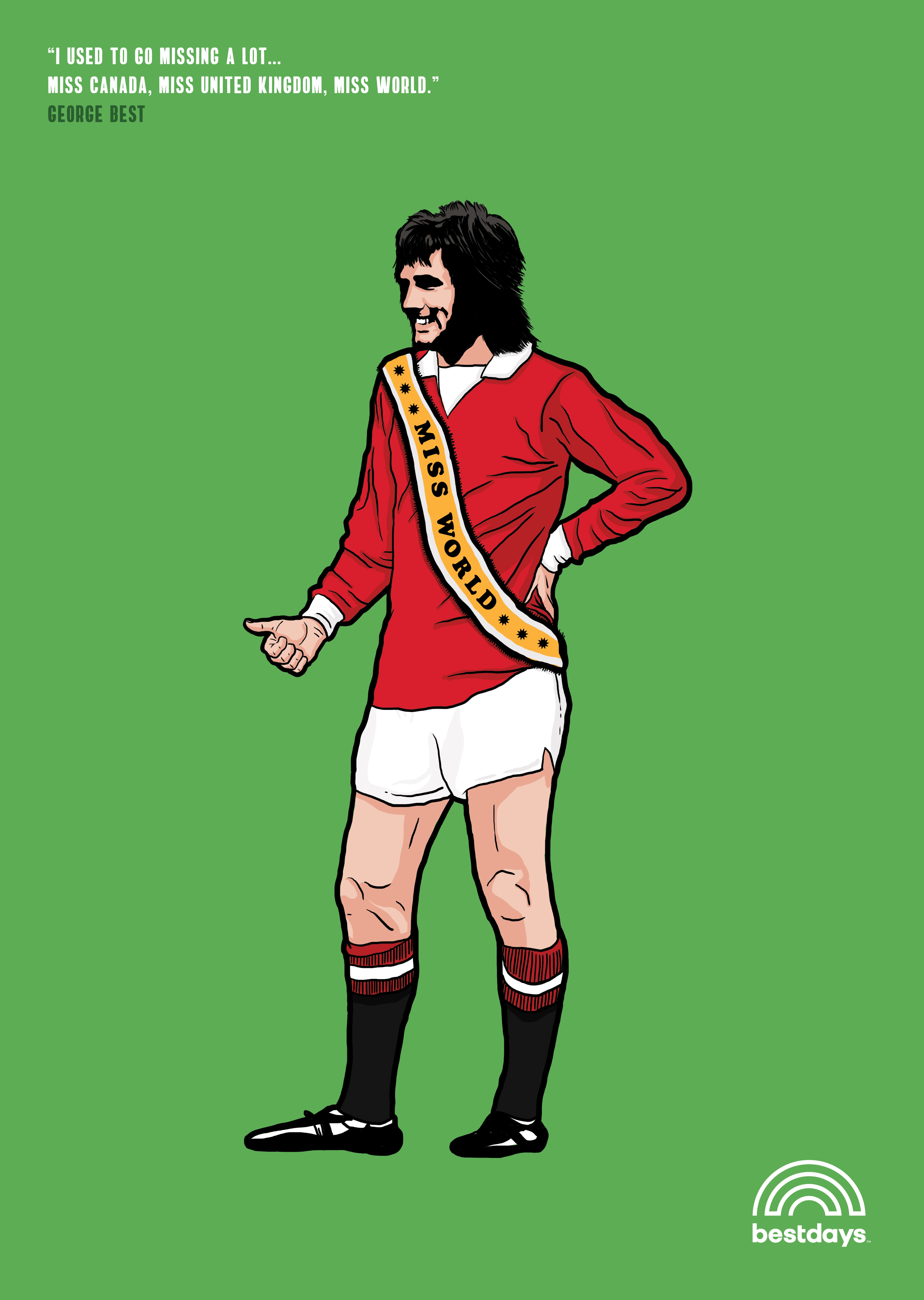 The boutique-owning boy from Belfast will forever be associated with greatness on the pitch and a cavalier lifestyle off it. Our poster carries on the legacy of a life cut far too short.