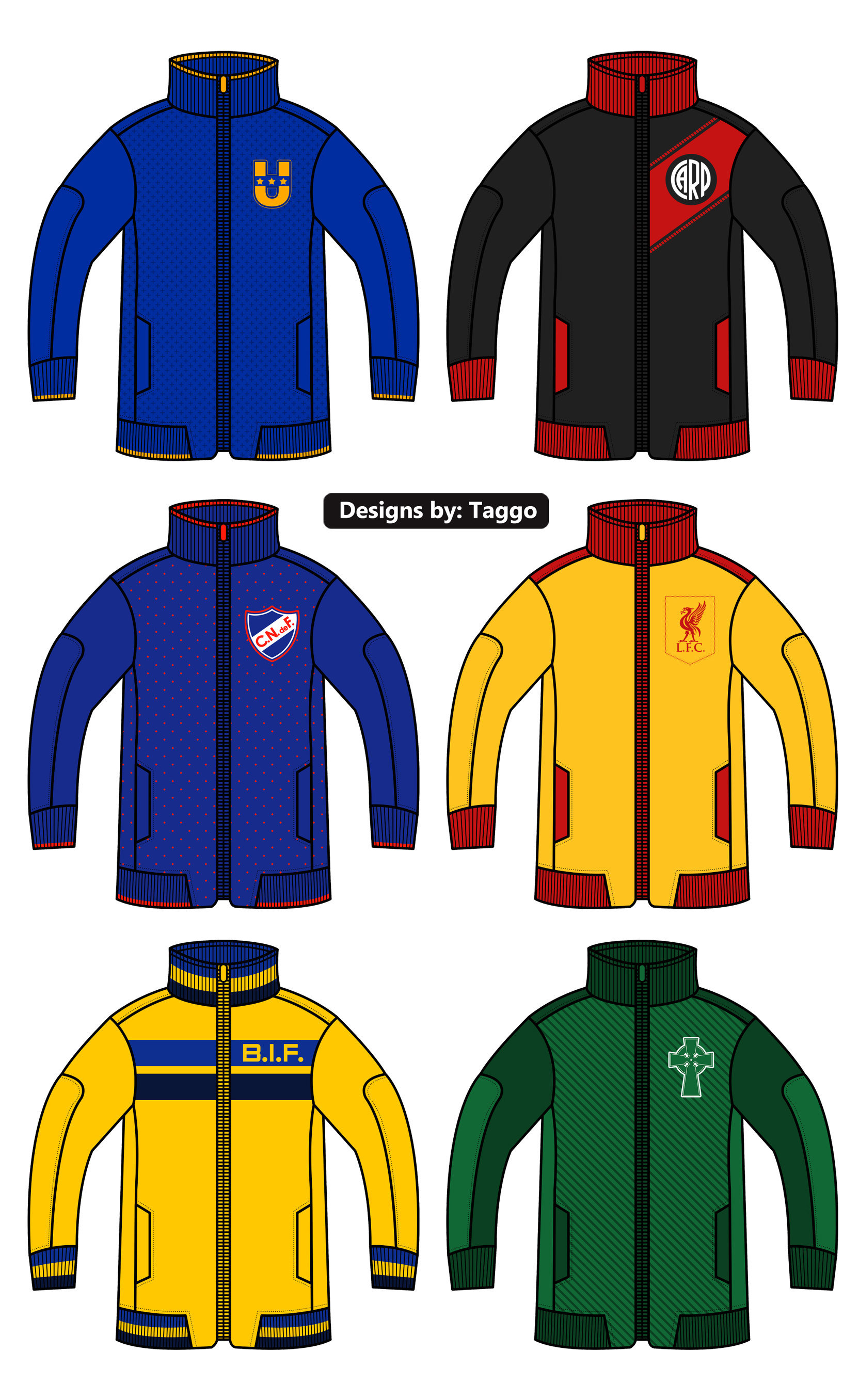 Some track jackets designs for the following teams: