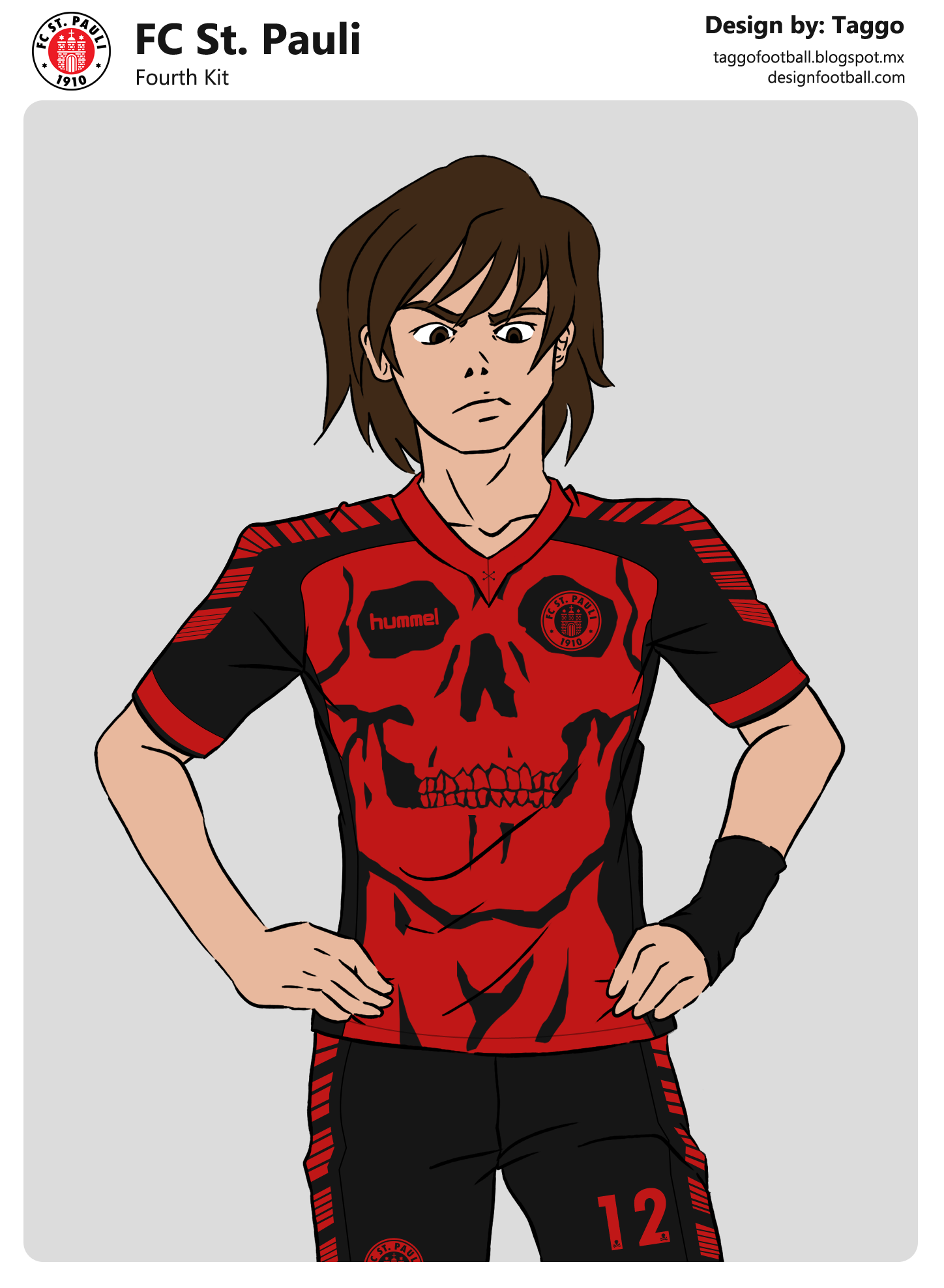 A drawing/ template i made, with a "manga-esque" style featuring my design for St. Pauli made by Hummel.