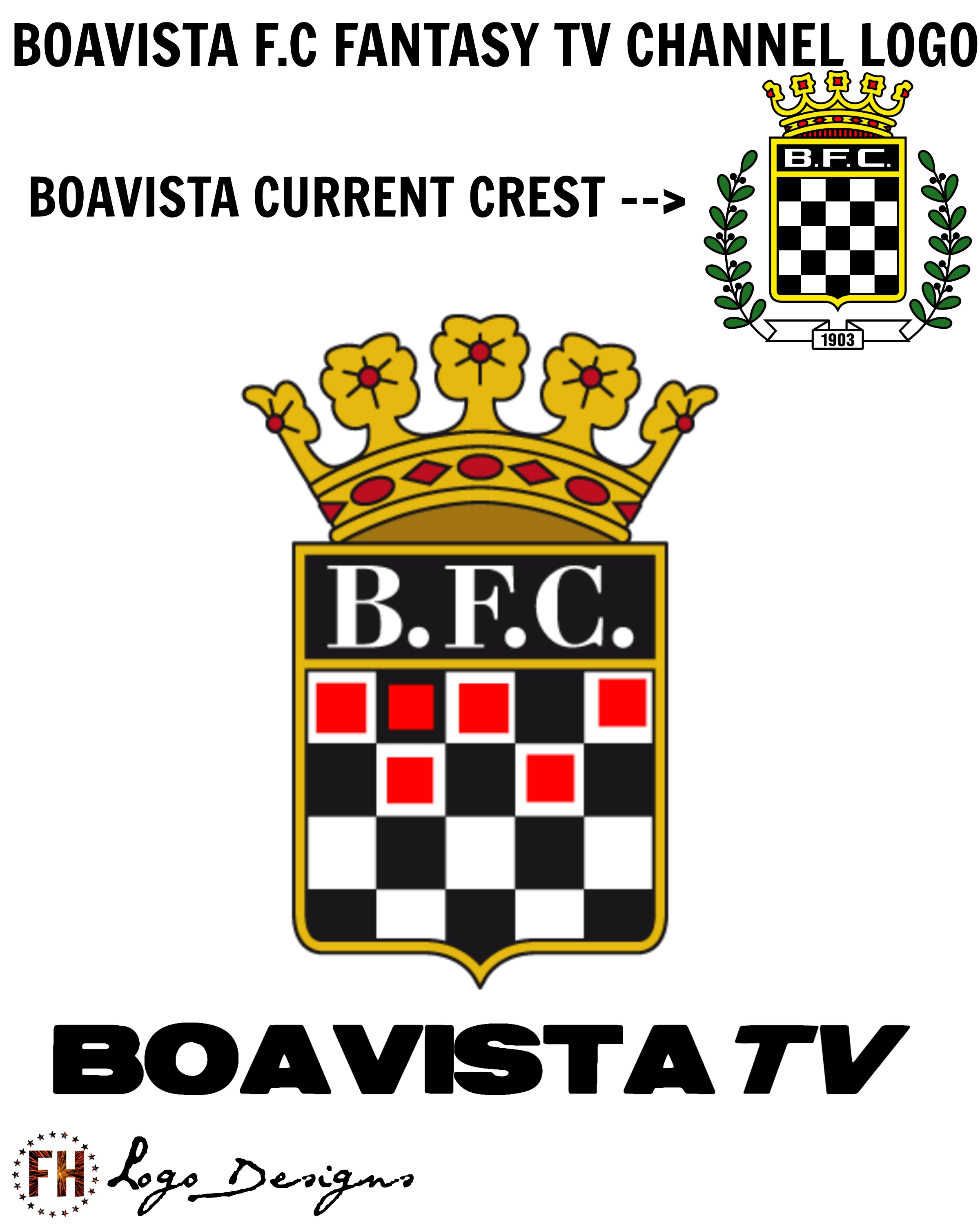 Only 3 Portuguese Teams (Benfica, Sporting and Porto) have official TV channels. So I decided to do one for the club from Porto, Boavista FC (League winners in the season 200/01). On the crest that I designed, I added some red squares to the black and white, to spell out the letters TV.