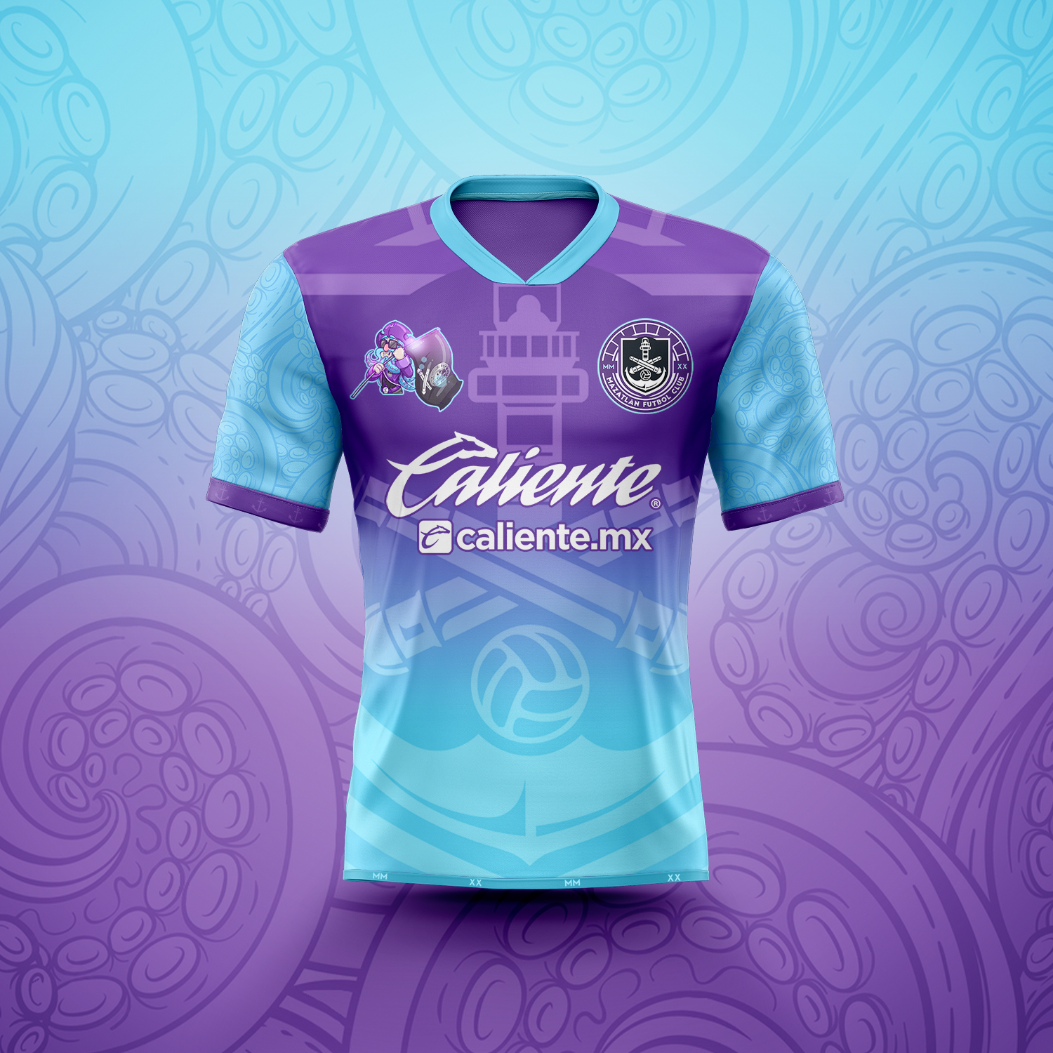 Finally making my first contribution to the Loud Kits Challenge! I adored this concept especially the colour palette and wanted to go as crazy as I could. Ended up taking inspiration from Gamba Osaka's 90s shirts when they featured their mascot on the shirts. As a result, I used Mazatlan's mascot (Capitan Krak) in replace of the sponsor.
