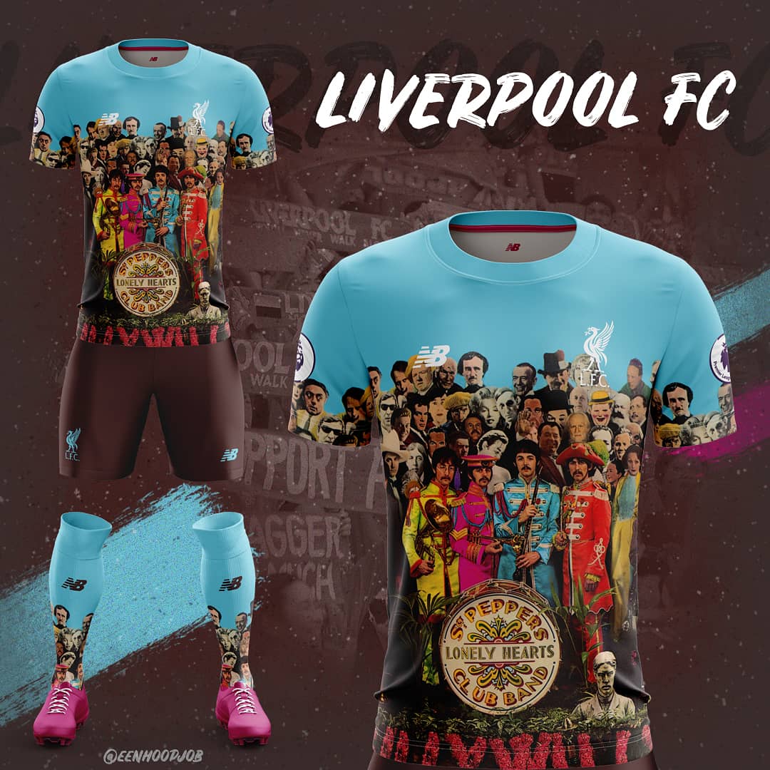This Liverpool away kit is based on the famous album cover of St. Peppers by the Beatles.