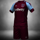 The Home Kit is primarily based on the 1892 Home Kit made by Adidas, it features a custom coloured emblem and an earthy motif on the sleeve design, a subtle nod to how the the club stays down to earth and true to its' roots. The shirt can be paired with either white or claret shorts and white or blue socks.