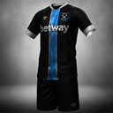 The Away Kit is primarily based on the 2009/10 Away Kit made by Umbro, but switches the oroginal blue-on-blue colour scheme for a striking black and white pallet, with the bold bright blue stripe featuring a flowing water design, reminiscent of The River Thames. The shirt is paired with black shorts and white socks.